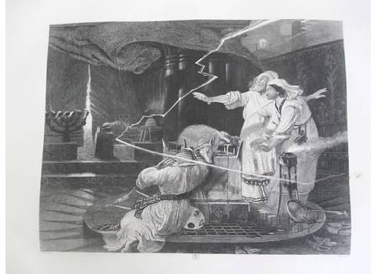 In 1876, the publisher Archibald Fullarton & Co. published the Illustrated Family Bible. This edition of the Bible included twelve engravings by William Bell Scott of his own designs, William Holman Hunt’s Light of the World, and several dozen engravings from paintings by nineteenth-century French and German artists, including Horace Vernet, Ary Scheffer, Paul Delaroche, Johann Friedrich Overbeck and Peter von Cornelius.
